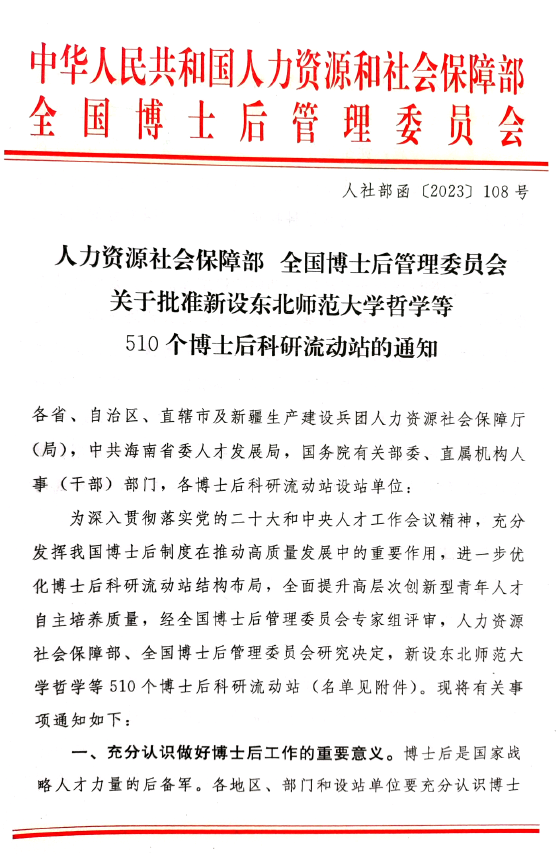 近日,人力资源和社会保障部、全国博士后管理委员会下发《关于批准新设东北师范大学哲学等510个博士后科研流动站的通知》,纽约国际官网纺织科学与工程博士后科研流动站成功获批。