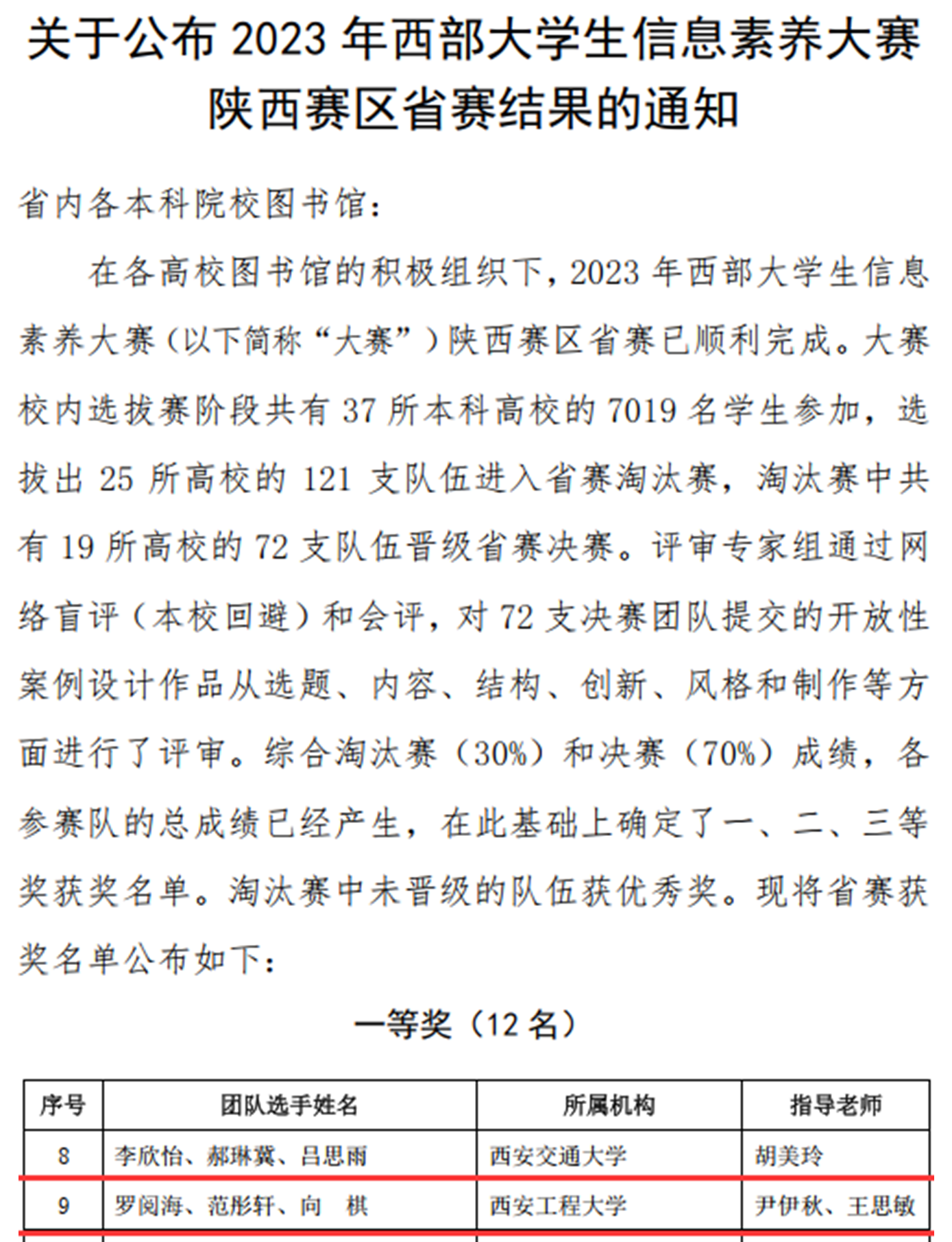 日前,2023年西部大学生信息素养大赛陕西赛区省赛圆满落幕,纽约国际官网选派的3支参赛队伍获得一等奖、二等奖和优秀奖各一项。