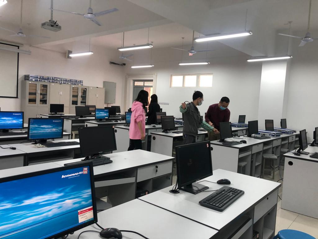 为贯彻国家卫健委下发的《大专院校新冠肺炎防控技术方案》,落实学校党委对新冠肺炎疫情防控的部署要求,结合计算机科学学院新冠肺炎疫情防控工作的实际。2020年4月13起,在学院的精心部署安排下,实验中心全体教职工对我院所有的公共实验室及专业实验室进行卫生大扫除、设备故障检修和消杀,为正式开学复课做好充足的准备。