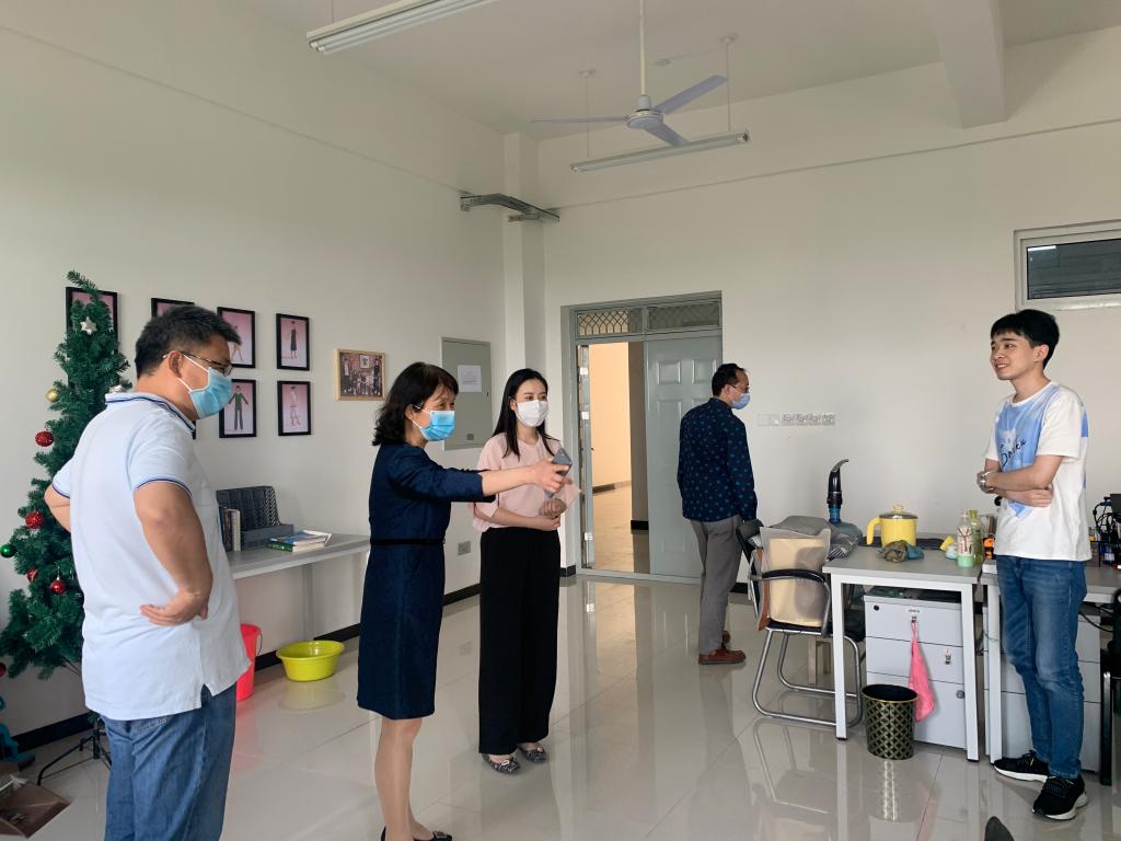 王雅慧鼓励大家返校后放松心情,潜心学习,积极与导师联系,保持乐观心态,做好个人防护工作,日常多锻炼、宿舍多通风,保持良好卫生习惯,兼顾好防疫与学业发展。薛涛要求同学们严格遵守学校有关疫情防控的规定,鼓励大家及时调整好状态,抓紧时间投身学习和科研,提高学习效率。周波就学校有关防控的具体措施向每位同学提出了要求,要求大家一定要做好每日晨午检测温和晚间签到,返校后生活学习有需求和困难及时向相关老师反映。程帅询问了同学们当前存在的困难及问题并现场予以解答,她鼓励同学们要互帮互助,轻松愉快地在校内进行生活学习。在实地深入宿舍和工作室过程中,党政领导也对于存在部分不符合防疫工作要求的情况进行了及时纠正。