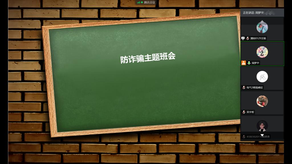 为进一步提升电子信息学院学生防诈骗意识,增强防诈骗能力,2018年6月,电子信息学院2018级、2019级所有班级通过线上手段开展防诈骗安全教育主题班会。