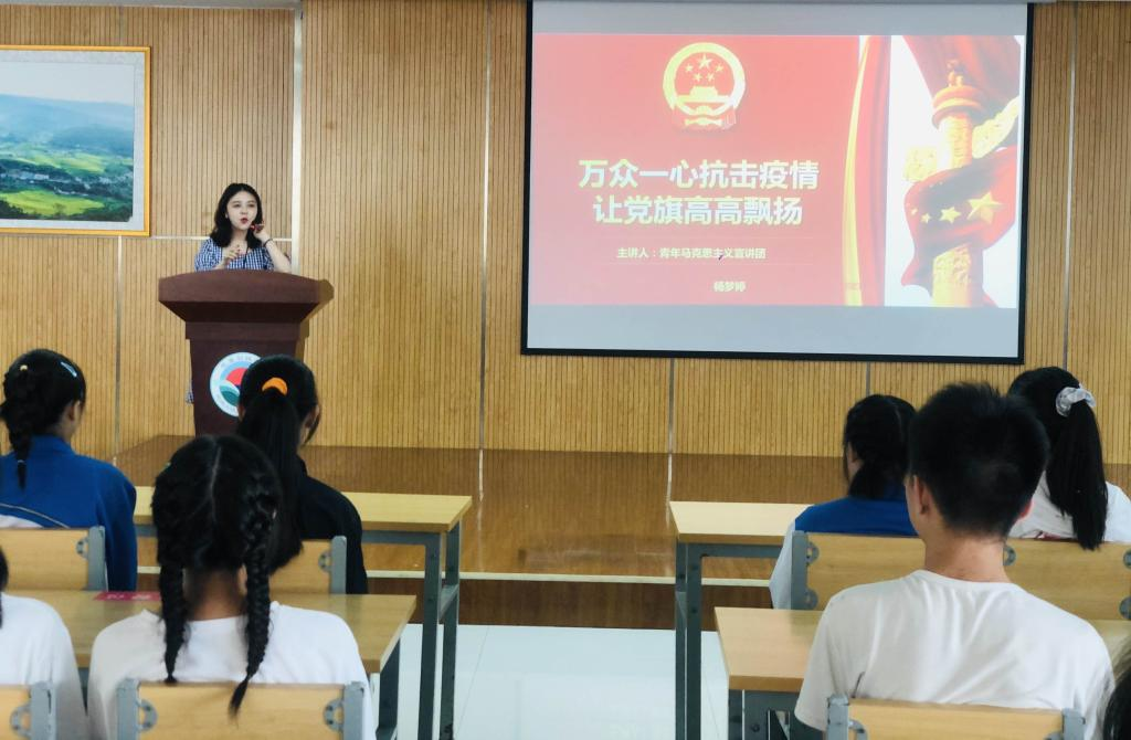 2020年7月2日下午,纽约国际967线路测试马克思主义学院青年马克思主义理论宣讲团成员赴安康市岚皋县花里中学开展的“共抗疫情,爱国力行”主题宣讲活动,花里中学副校长张永贵、教务处主任张威明、党支部副书记汪辉、团支部书记李双双及全体初中生参加了此次活动。