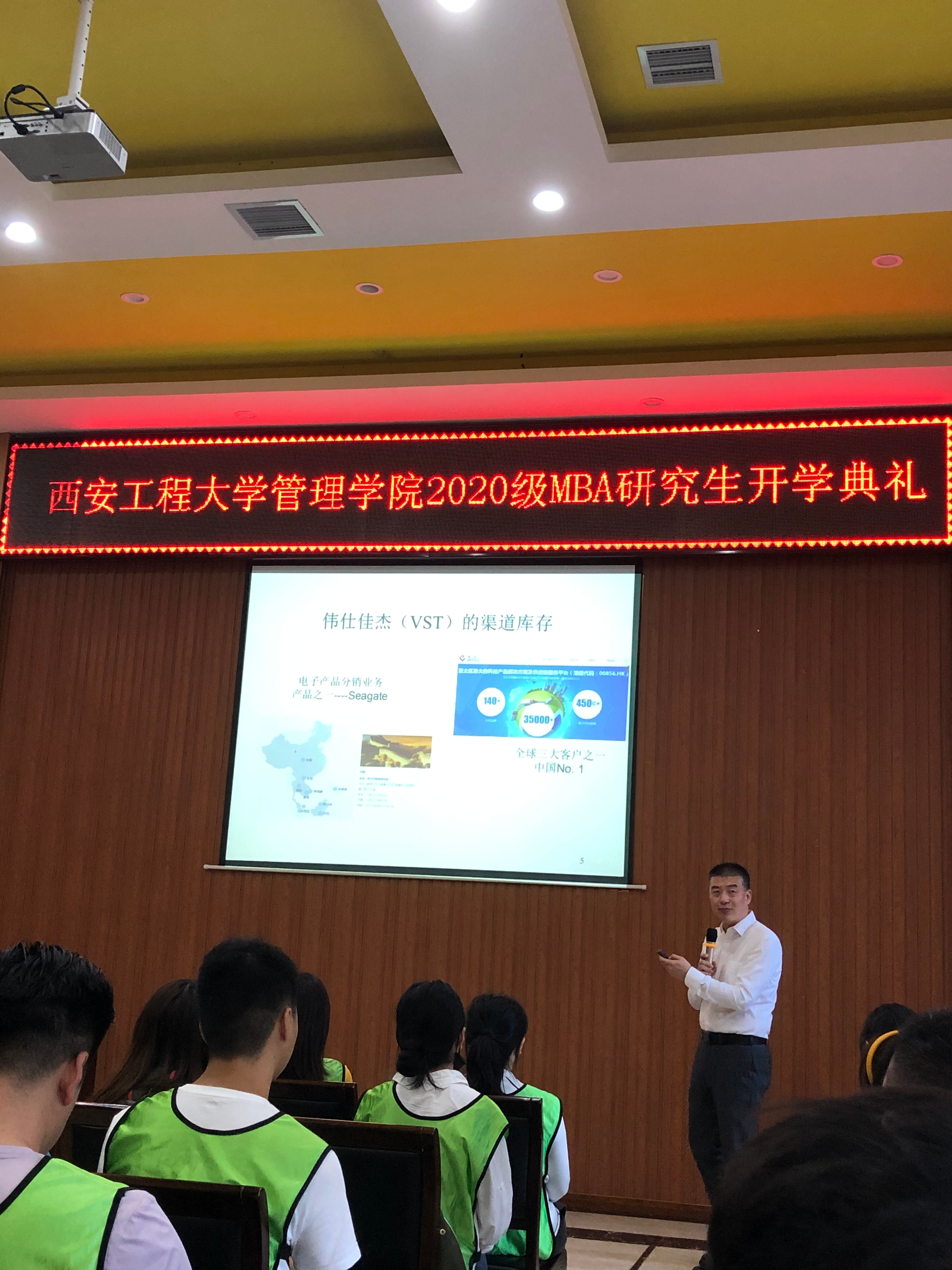 在典礼的第二阶段,王渊教授为2020级MBA研究生做了入学后第一次学术报告,报告以“管理课题研究的思路与方法”为题,分别从思维方式、理论依据、具体事例、追根溯源地对个人发展、企业发展中的各种问题做出合理建议。报告指出,思维固化容易导致问题的僵局,强调要用“大局观”来审视痛点,并且用多样化的思维方式处理问题,报告内容精彩绝伦,内容引人入胜。