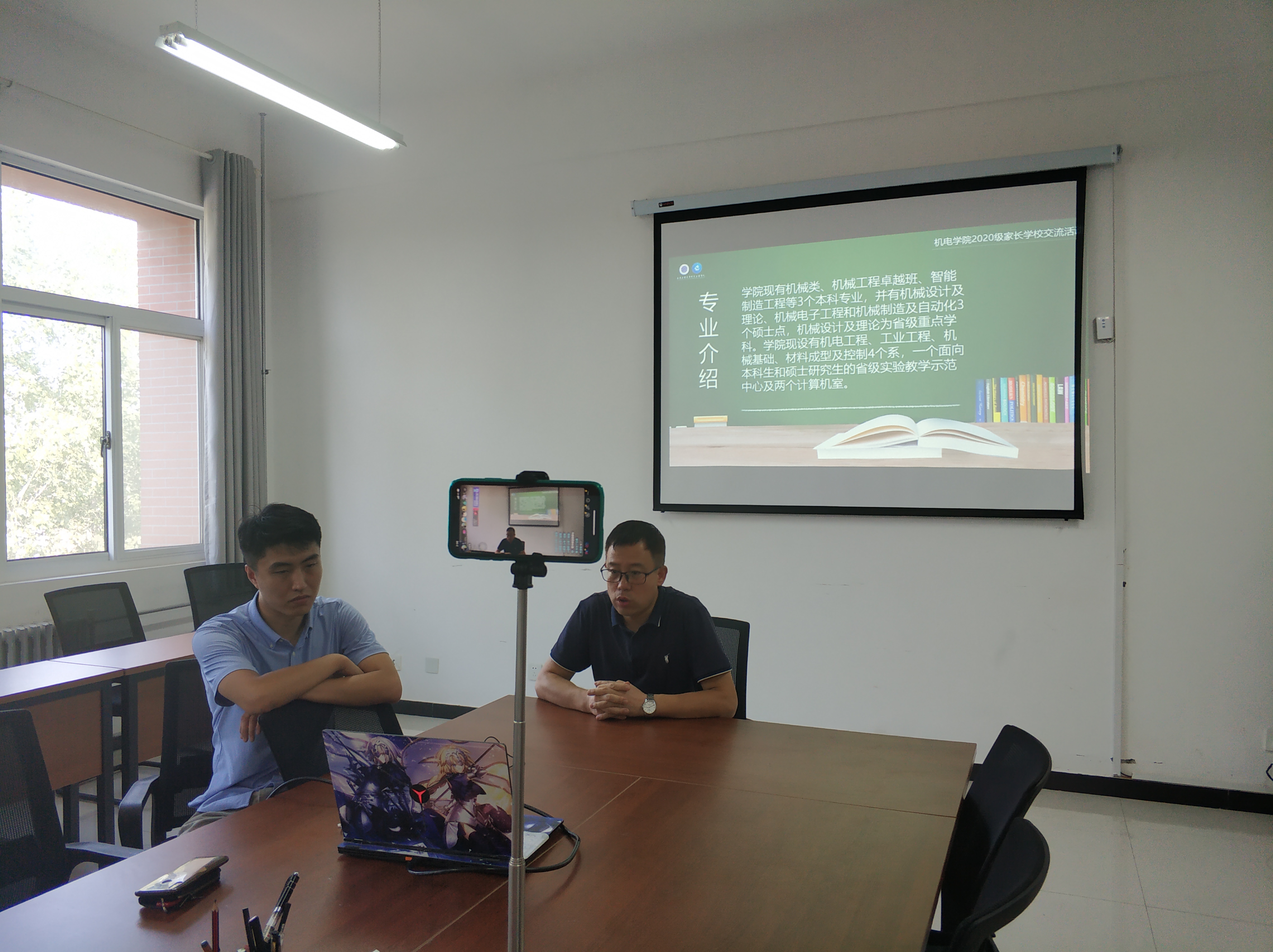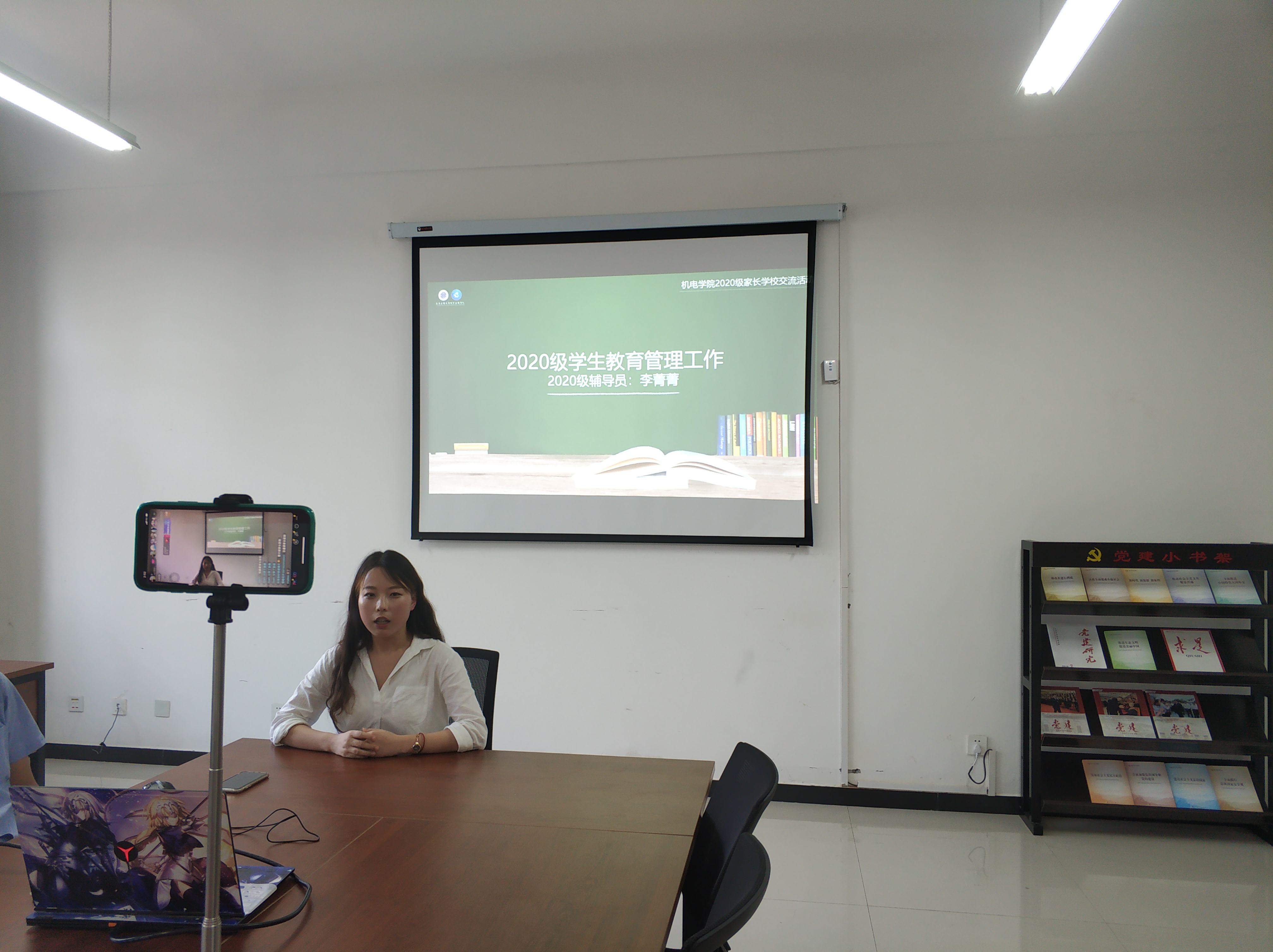 9月15日下午,机电工程学院2020级新生家校交流会在学院党团活动室举行。根据疫情防控工作要求,学院300余名2020级本科新生及部分家长在线上参加此次交流会,活动采用抖音直播形式举行。学院党委书记王鸣媛、学院党委副书记冯涛、副院长肖渊、资助专项工作辅导员刘鹏、2020级新生辅导员李菁菁参加会议。本次活动由院党委副书记冯涛主持。
