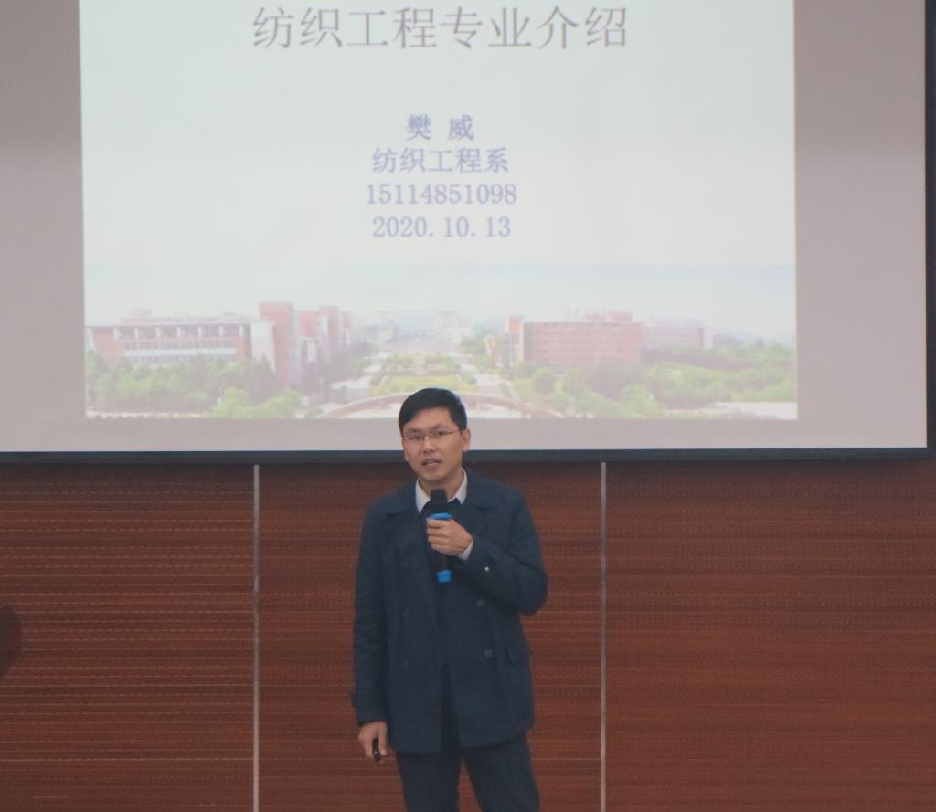 樊威、王雪燕、韩玲分别为纺织工程、轻化工程和非织造材料与工程的新生就本专业基本知识、课程要求、就业需求、未来发展前景等做了讲授,使同学们对所在专业有了基本的认知,为各自制定合理的大学生活与学习规划提供了指导。