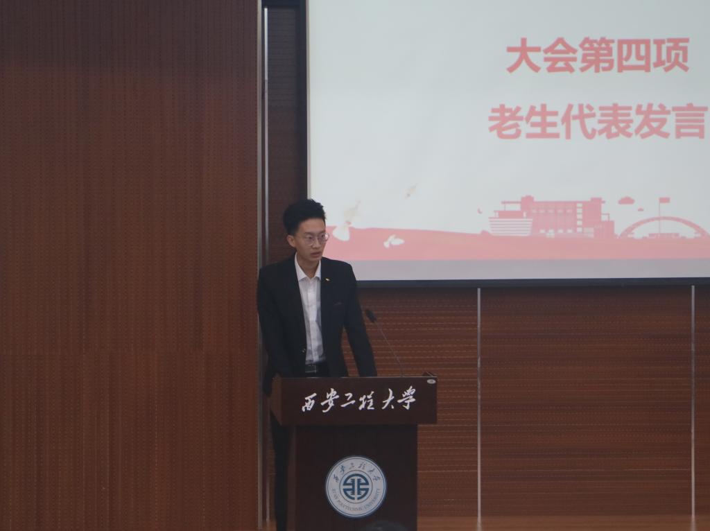 随后,2019级学生代表纺织工程专业伊瑞欣和大家分享了在校一年来的学习工作经验和体会,希望大家尽早做好学习和生活规划,为未来四年的大学生活奠定扎实基础。2020级新生代表纺织工程专业冯靖珊在发言中表达了对大学生活的期望,号召全体新生以高标准严格要求自己,主动向老师、学长和优秀校友学习,学好专业知识,扩展知识储备,提高综合素质,为把自己培养成国家和社会需要的人才而努力奋斗。