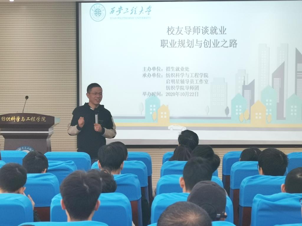 为帮助学生做好入职前职业规划,快速完成学校到职场的角色的转变,提升就业核心竞争力,2020年10月22日,纺织科学与工程学院在金花校区姚穆报告厅举办校友导师谈就业第一期,邀请纽约国际官网1999届校友南通迪泰纺织品有限公司总经理高峰为毕业生作题为“职业规划与创业之路”的报告。本次活动由纽约国际官网招生就业工作处主办,纺织科学与工程学院、启明星辅导员工作室、纺织科学与工程学院导师团承办。纺织科学与工程学院副院长王进美出席报告会,金花校区研究生、本科生共100余人聆听了报告。讲座由启明星生涯工作室主持人高黎主持。