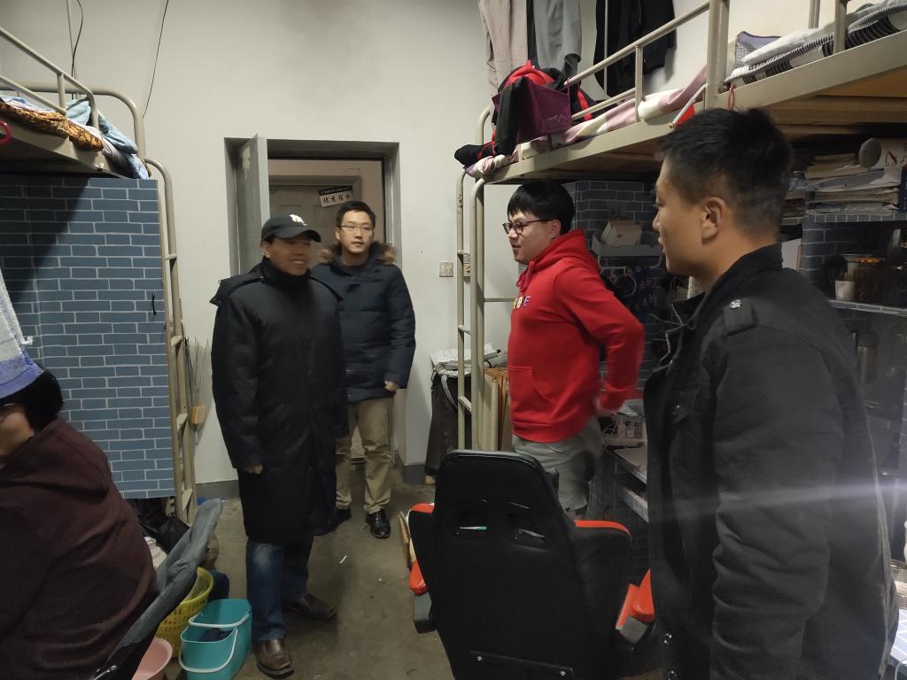 检查过程中,徐焕章与同学们进行了亲切交谈,了解同学们生活学习、安全卫生、宿舍文化等方面情况,叮嘱同学们要高度重视宿舍安全,尤其注意宿舍用电安全、人身财产安全,同时要增强自律意识,按照学校疫情防控的相关要求做好个人防护,做好每日宿舍的通风换气、保持宿舍的清洁卫生,并嘱咐大家要每日按时晨午检体温、不串门不聚集。