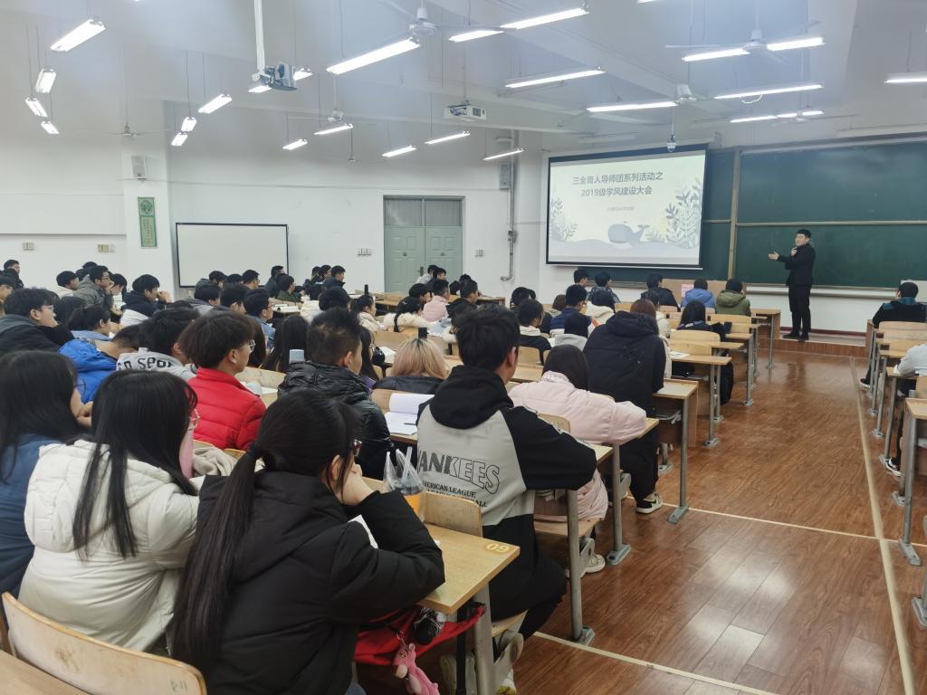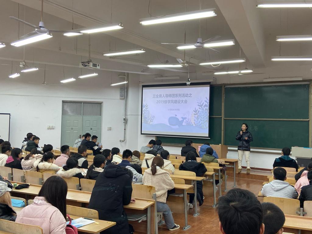 为响应学校学生工作部(处)关于进一步加强学风建设,严肃考风考纪,增强学生诚信意识的通知要求。12月12日,计算机科学学院在B-133教室召开了2019级学风建设暨诚信应考大会。学院学工办主任朱瑾,2019级辅导员薛绍凡出席会议,2019级各班学生骨干参加会议,会议由薛绍凡主持。