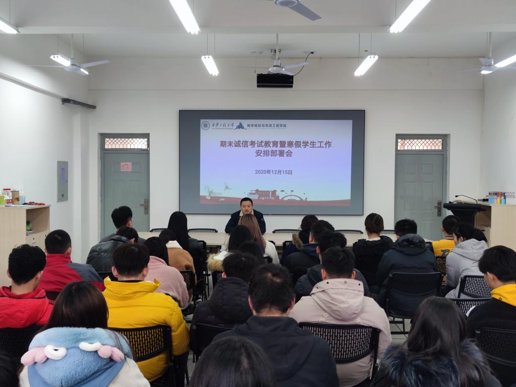 为进一步加强学风建设,树立良好的诚信考试之风,做好寒假前后学生教育管理各项工作,城市学院于12月15日中午在8-322会议室召开期末诚信考试教育暨寒假学生工作安排部署会。学工办主任、团总支书记凌旭以及各年级班长、团支书参加。